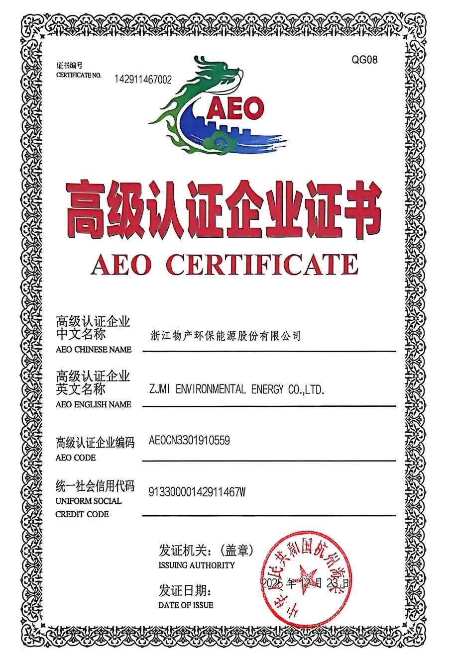 近日,物产环能成功通过AEO高级认证,正式跻身海关最高信用等级企业行列。此次认证的通过,标志着公司长期以来在优化内部控制管理、强化贸易安全以及提升进出口业务合规水平等方面所做的努力获得了国家层面的权威认可,各项指标已全面达到国际通行标准,为公司进一步拓展国际市场奠定了坚实基础。