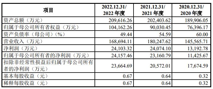 2020年、2021年、2022年,热威股份营业收入分别为145,565.71万元、180,247.62万元、168,694.11万元;净利润分别为13,192.78万元、24,074.10万元、24,103.32万元;归属于母公司所有者的净利润分别为11,425.67万元、23,160.79万元、24,157.46万元;扣除非经常性损益后归属于母公司所有者的净利润分别为17,674.59万元、20,572.01万元、23,664.69万元。