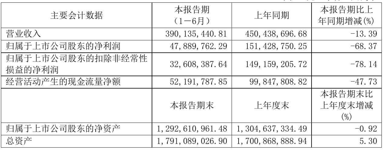 8月30日,圣达生物(603079)近日发布2021年半年度报告,报告期内营业收入390,135,440.81元,同比减少13.39%;净利47,889,762.29元,同比净利减少68.37%。
