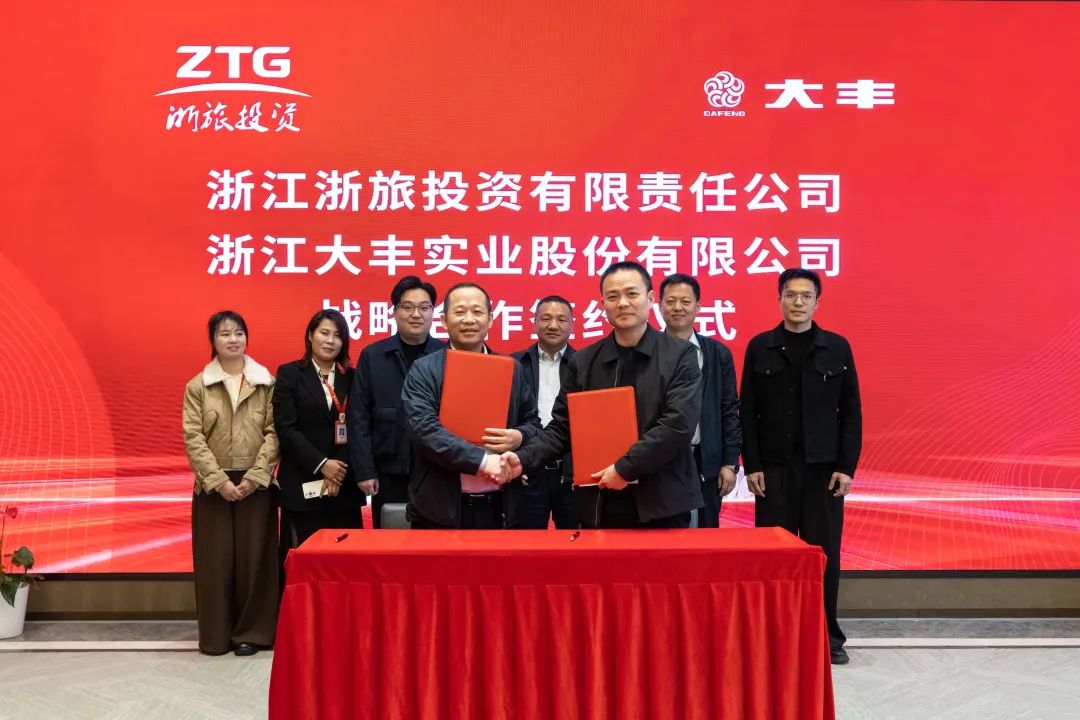 3月11日,浙江浙旅投资有限责任公司与浙江大丰实业股份有限公司正式签署战略合作协议,聚焦文旅+科技融合,共同探索科技赋能文旅的新路径。浙江浙旅投资有限责任公司董事长李波,浙江大丰实业股份有限公司董事长丰华分别代表签约。