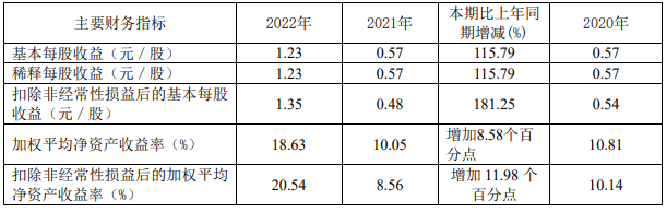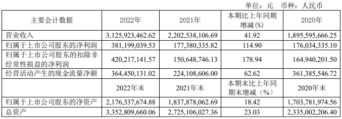 先达股份4月25日发布2022年年度报告,2022年,公司营业收入31.26亿元,同比增加41.92%;归属于上市公司股东的净利润3.81亿元,同比增加114.9%;基本每股收益1.23元,同比增加115.79%。