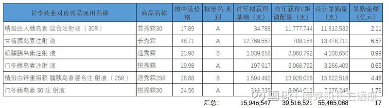 既然甘李药业占据本次集采较大份额,为何基础采购量只有1595万支,合计采购金额7.05亿元?希望高手给与指点。