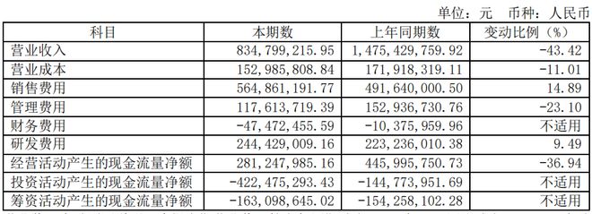 半年报披露,甘李药业上半年营收近8.35亿元,同比下降43.42%;实现归属于上市公司股东的净利润亏损近1.98亿元,同比下降153.01%。