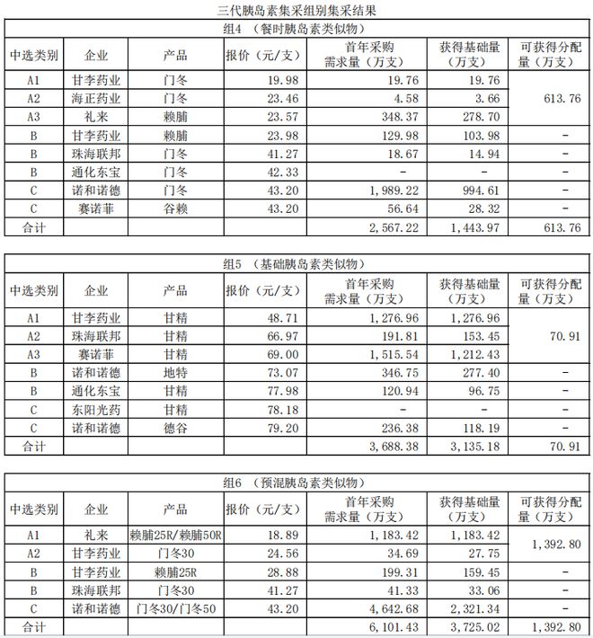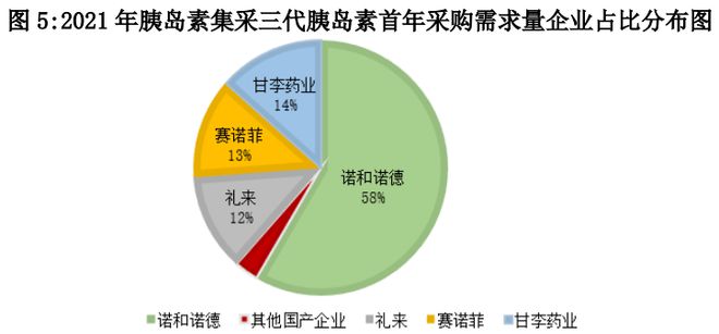 三代胰岛素的需求量大于二代胰岛素,集采量中甘李药业是除外企外国企中份额最大的,首年采购需求量排名第二。