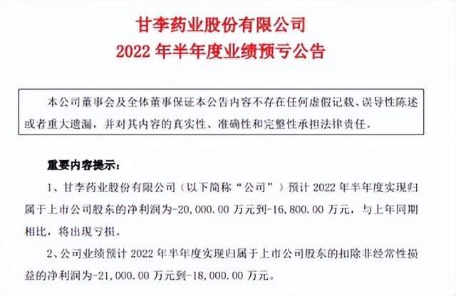 早在七月份的半年报业绩预告时,甘李药业就预料到了亏损的局面,事实证明果然如此,更新的半年报数据显示其收到了上市三年以来的首次亏损。据半年报数据显示,甘李药业上半年营业收入为8.35亿元,同比下降43.42%;归母净利润由盈转损为1.98亿元,同比下降153.01%。