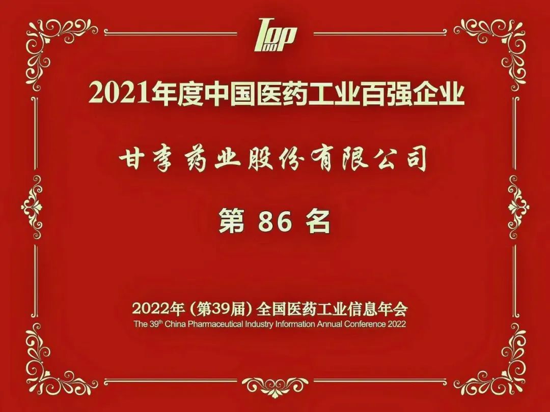 2022年12月18日,中国上海,“2021年度中国医药工业百强榜”在2022年(第39届)全国医药工业信息年会上正式揭晓。甘李药业凭借研发实力和经营成绩再次荣登“2021年度中国医药工业百强榜单”。