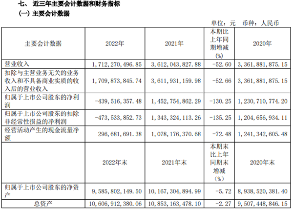 日前,甘李药业股份有限公司(“甘李药业”603087.SH)发布的2022年年报显示,公司2022年实现营收17.12亿元,同比下降52.6%;归母净利润-4.4亿元,同比下降130.25%;扣非归母净利润-4.74亿元,同比下降135.25%;基本每股收益-0.78元/股。