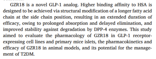 GZR18为甘李药业自主研发的每周一次长效GLP-1R受体激动剂肽类药物,目前处于二期临床阶段。此次申报的则为口服版GZR18。