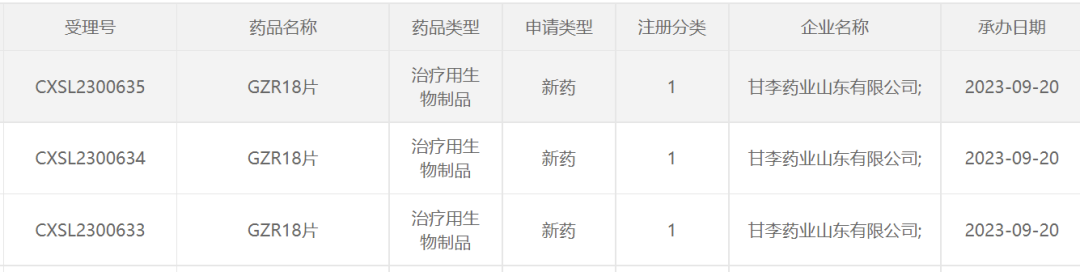 2023年9月20日,甘李药业GZR18片的临床试验申请获得NMPA受理。