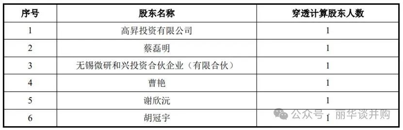 微研和兴为标的公司员工持股平台,穿透后上层合伙人均为标的公司员工(剔除重复的蔡磊明,共21名有限合伙人),在计算股东人数时,按一名股东计算。本次交易的标的公司无锡微研穿透计算后的股东人数未超过200人