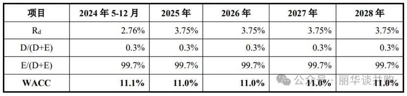 将上述参数代入加权平均资本成本的计算公式,计算得出被评估单位的加权平均资本成本如下: