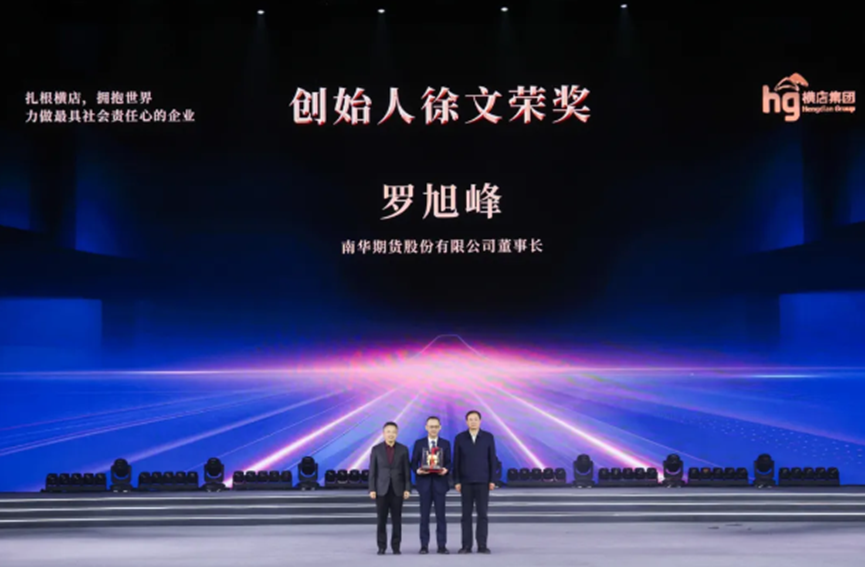 颁奖盛典上,横店集团2024年度各奖项揭晓。其中,南华期货董事长罗旭峰获“创始人徐文荣奖”。回顾南华期货发展的这些年,罗旭峰表示,“一路走来交了很多“学费”,也有很多故事和感悟。能迈过这些坎坷,非常感谢横店集团和领导的帮助和包容,学到了很多。集团国际化战略的成功,也给南华期货未来发展提供了一个新的平台。人生就像马拉松,跑到后半段时其实挺累的,但是越累,越要咬牙坚持,只有跨过终点线,我们才是有价值的。未来我们要继续努力,朝着人生的目标前进,践行国际化战略,向企业的发展交上一份满意的答卷。”