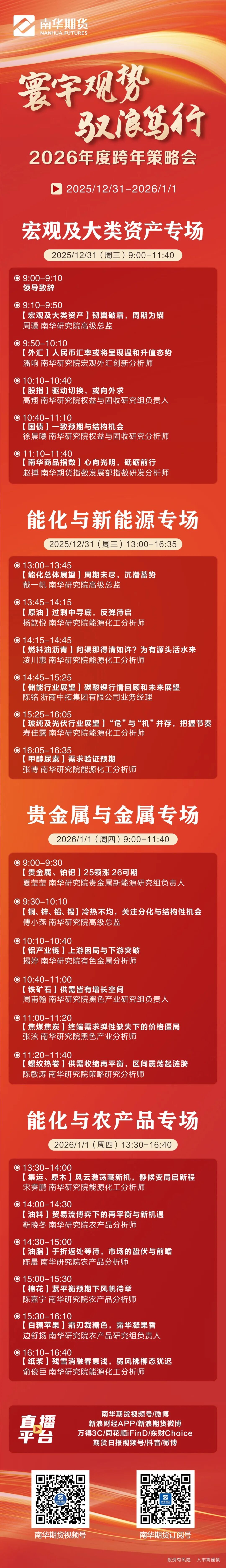 南华期货2026年度跨年策略会以“寰宇观势,驭浪笃行”为主题,以全球视野洞察趋势,构建更具韧性的交易框架,在风浪中稳健前行。南华期货诚邀您参与本次策略会,与行业专家与分析师一同探讨未来方向!