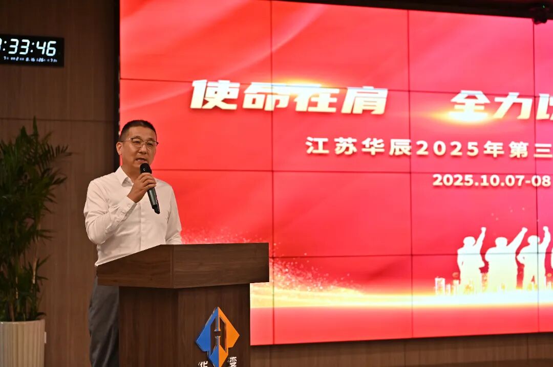 秋风送爽,战鼓催征。2025年10月7日至8日,江苏华辰变压器股份有限公司营销中心2025年第三季度营销会议在总部隆重举行。全国各地的营销将士齐聚徐州,共同复盘前三季度的战绩与得失,全面部署第四季度收官之战的攻坚目标与行动方案。本次会议紧紧围绕“前线复盘·中场赋能·高层引领”的主线,奏响了一曲凝心聚力、决胜全年的磅礴乐章。