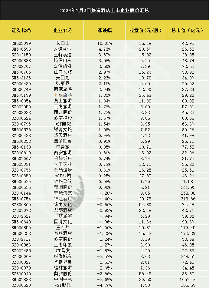 消息面上,文旅部数据显示,元旦假期全国国内旅游出游1.35亿人次,同比增长155.3%,按可比口径较2019年同期增长9.4%;实现国内旅游收入797.3亿元,同比增长200.7%,较2019年同期增长5.6%。
