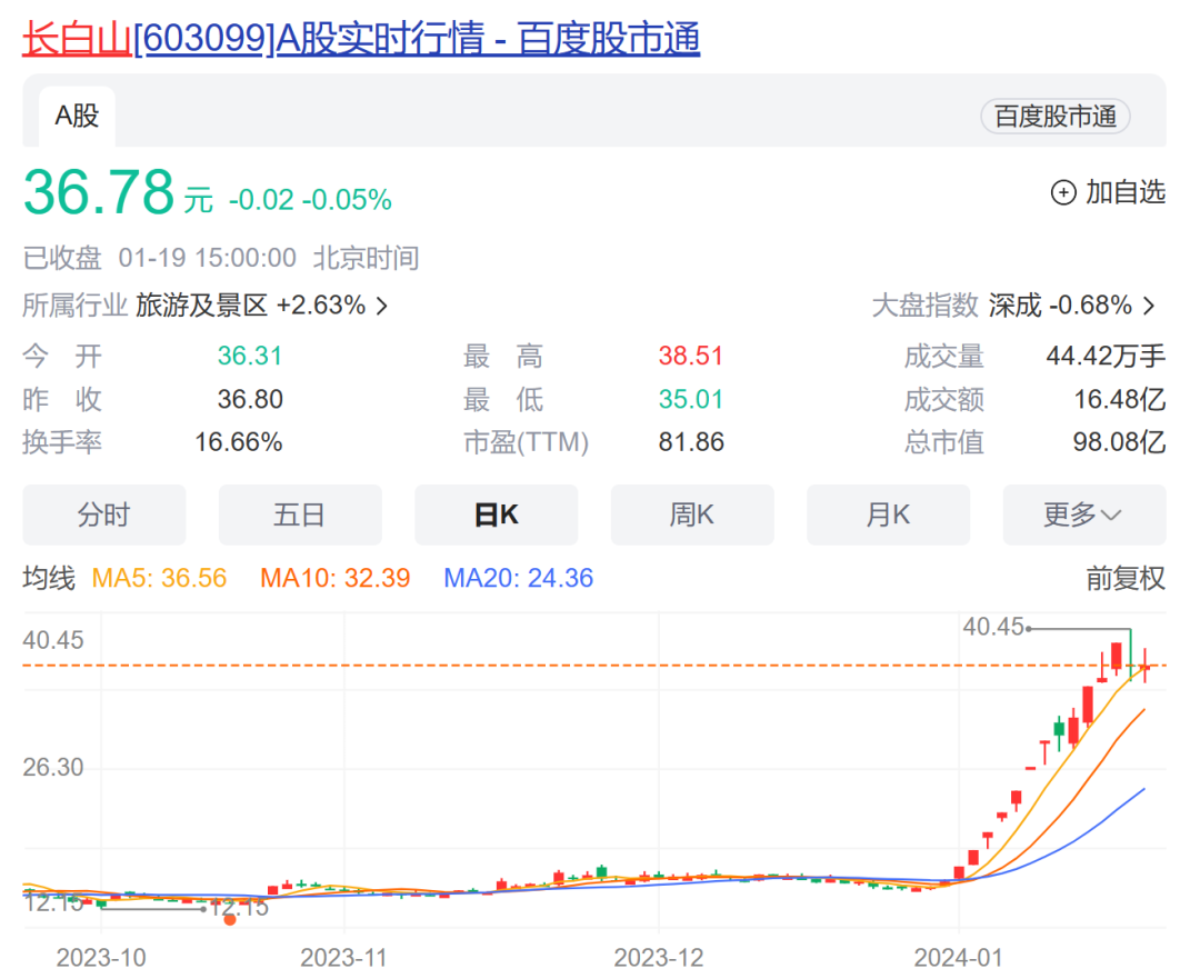 这个冬天,“南方小土豆”的热情燃烧到了股市,带火了“尔滨”隔壁长白山(603099)的股价。