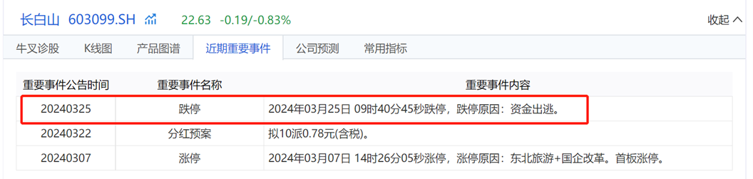 3月25日,收盘价23.12,大幅下跌10.02%,创近一年最大跌幅。9点40分45秒跌停,跌停原因:资金出逃