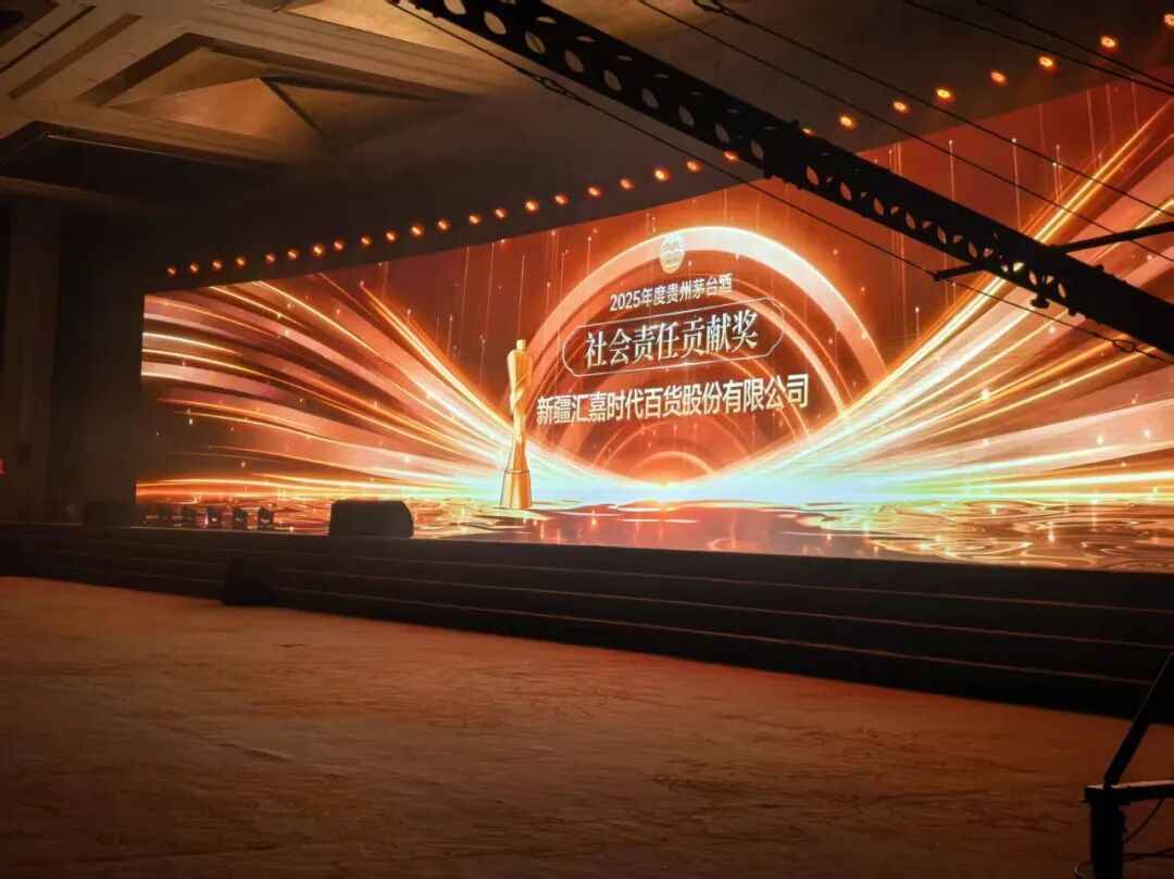 新疆汇嘉时代百货股份有限公司凭借在社会责任领域的持续深耕与突出实绩,荣膺2025年度贵州茅台酒“社会责任贡献奖”,公司总经理朱翔受邀参会并上台领奖。