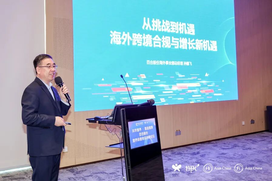 针对跨境赛道高速增长并呈现高集中度的新格局,外贸总监孙鹏飞结合跨境营养品市场现状,分享了跨境合规发展的关键路径,针对行业中存在的合规痛点与市场乱象,提出了更加链条化、一站式的跨境服务思路,并介绍了依托百合股份与新西兰生产基地所构建的出口与跨境协同模式,为客户实现全球市场布局提供支持。