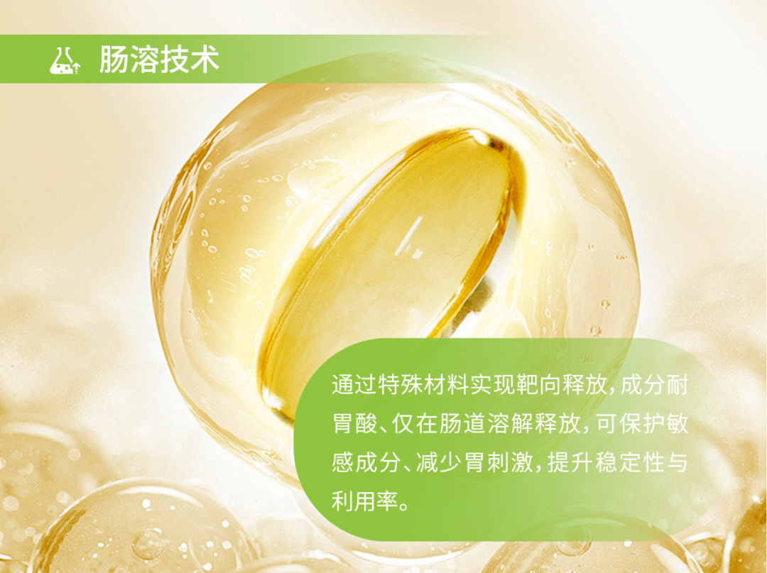 告别鱼油带来的胃部不适与口气烦恼。创新的肠溶软胶囊,采用独特肠溶包衣技术,确保软胶囊在胃中不溶解,而是精准抵达肠道后才释放鱼油,从根源上避免了刺激与返流问题。