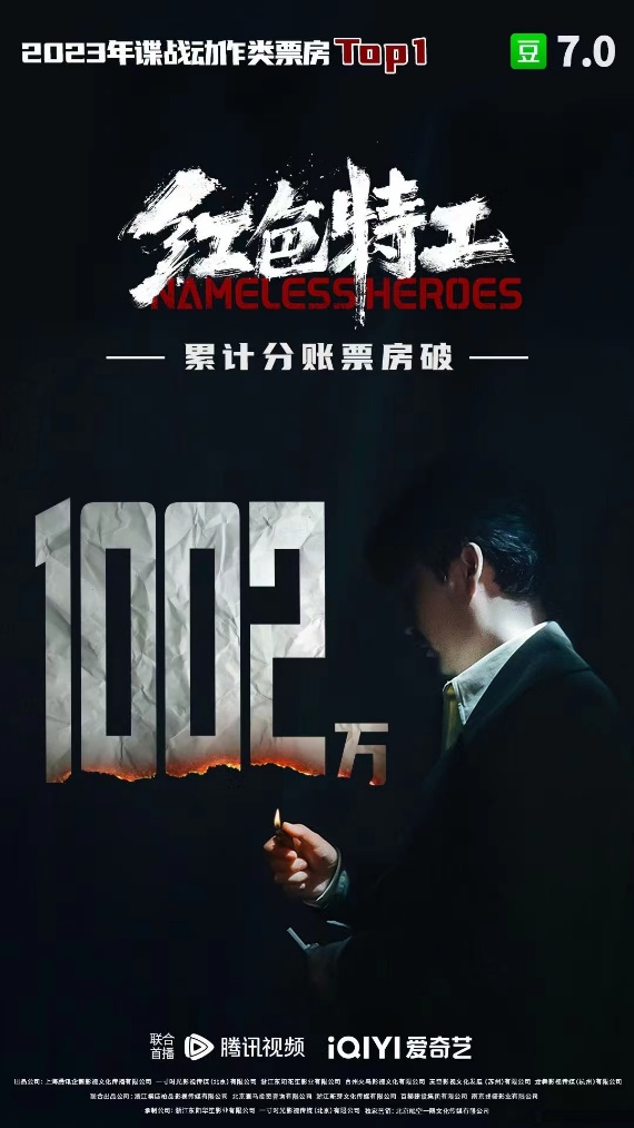 作为流媒体平台上线的新时代主流商业电影的代表作品,《红色特工》自8月1日在腾讯视频和爱奇艺双平台上线以来,热度上,多次蝉联全平台分账票房日冠,观影人次日冠,腾讯视频战争电影榜第一。