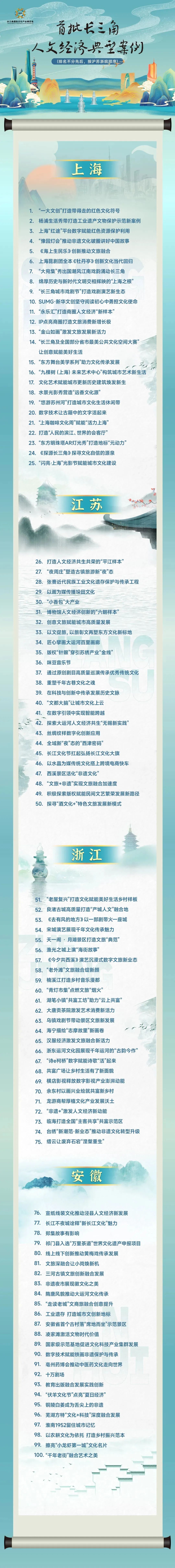 据悉,2023年10月,浙江联同上海、江苏、安徽,共同组织开展“首批长三角人文经济典型案例”评选活动,最终评出100个典型案例。(后附完整长图)