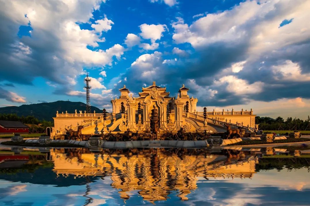 横店圆明新园,为复原百年前被毁北京圆明园所建,汲取圆明园盛时精华并进行创新,融中华文化与世界多元文化于一体的辉煌壮丽的文化乐园。其作为新时代背景下“强国梦”的重要展现,致力于将“文化强国”作为景区的战略核心以爱国主义教育基地、传统文化传承基地作为发展目标,打造世界级的文化旅游目的地。