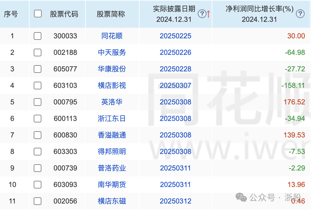 3月12日之前,A股有66家公司率先披露年报,其中浙江11家(同花顺最早)。横店系6家上市公司,集体在此前披露年报。