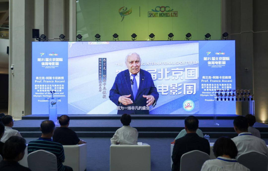 国际奥委会文化与奥运遗产委员会委员、米兰国际体育电影电视联盟主席弗兰克·阿斯卡尼通过视频致以问候,并代表联盟130个成员国,对北京国际体育电影周的举办表达祝贺。