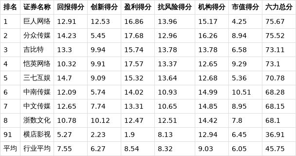 从所属行业角度来看,在申万一级传媒行业的131家上市公司中,横店影视位列行业第91位,行业平均分为45.75分。