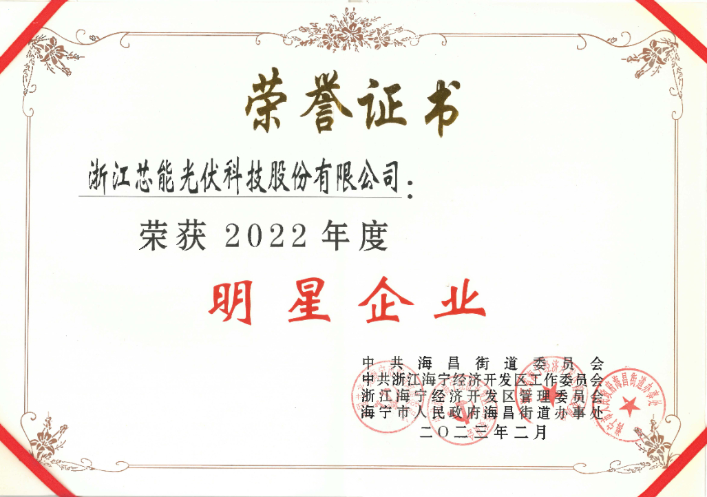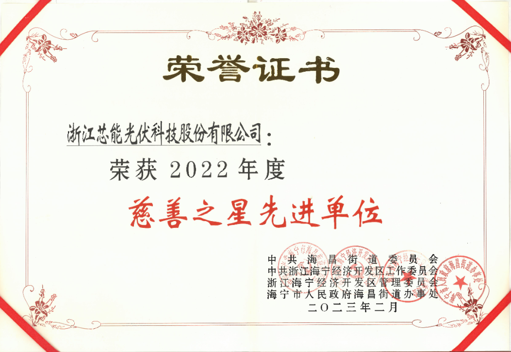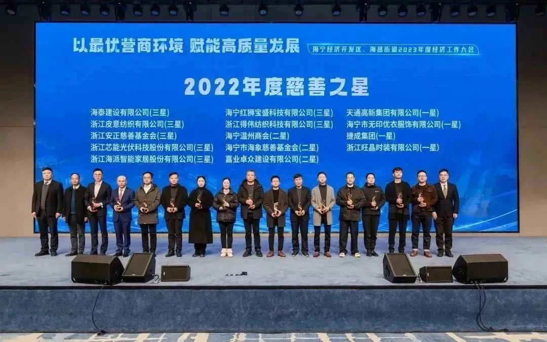 2023年2月8日,在海宁经济开发区、海昌街道“以最优营商环境赋能高质量发展”2023年度经济工作大会上,芯能科技荣获2022年度明星企业和慈善之星先进单位。