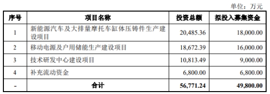 2023年8月31日,神驰机电发布向不特定对象发行可转换公司债券募集说明书(申报稿),公司本次发行可转换公司债券募集资金总额为不超过人民币49,800.00万元(含49,800.00万元),募集资金在扣除相关发行费用后拟全部投资于新能源汽车及大排量摩托车缸体压铸件生产建设项目、移动电源及户用储能生产建设项目、技术研发中心建设项目、补充流动资金。