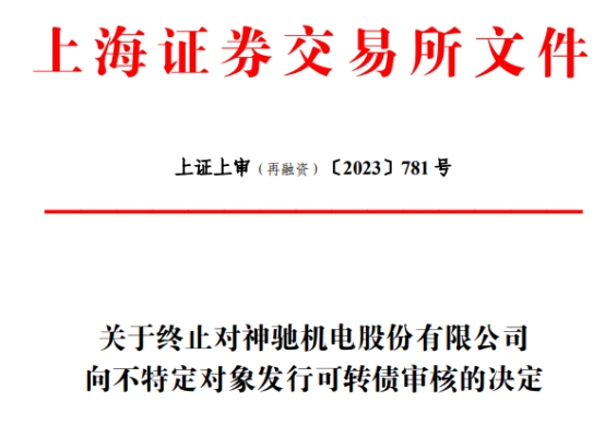 上交所网站昨日公布关于终止对神驰机电股份有限公司(以下简称“神驰机电”,603109.SH)向不特定对象发行可转债审核的决定。