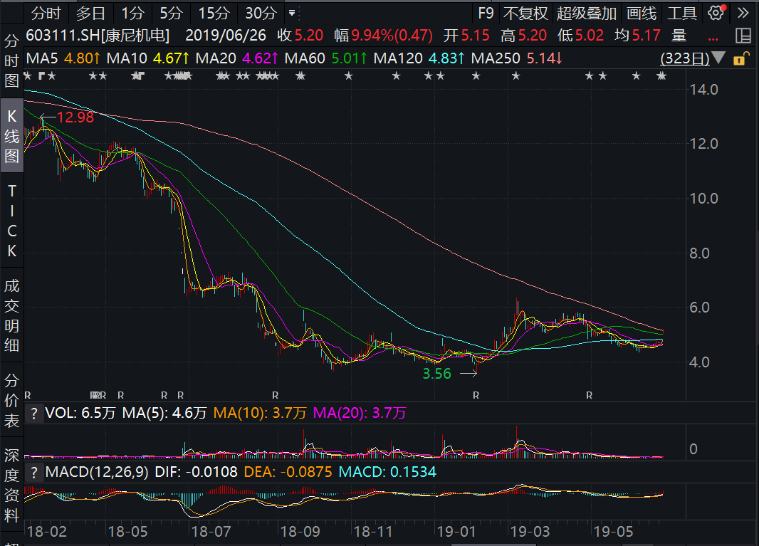 2018年6月25日刚开盘,康尼机电就连续近4个跌停,此后股价也是一路下跌,最低跌至2019年1月31日的3.56元,这一价格与每股11.40元定增价格来说,跌幅约69%,不可谓不惨烈。