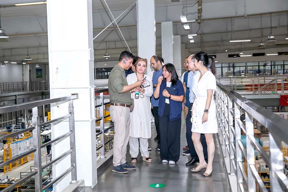 安德烈娅·奥赫达(前排左二)一行实地考察公司智能工厂