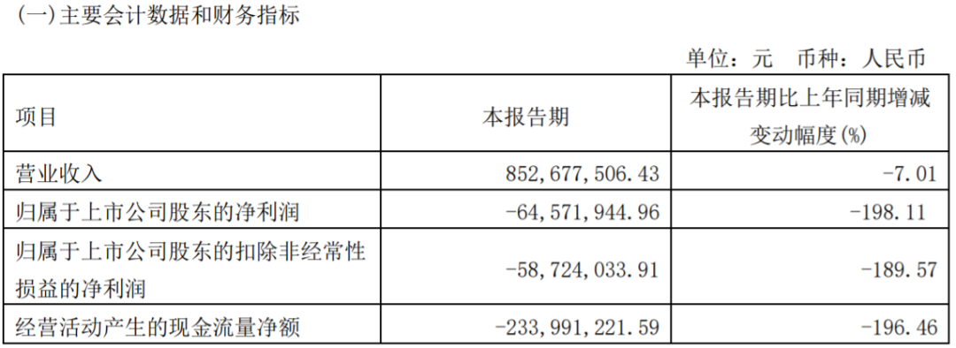 4月25日晚,渤海化学发布2022年第一季度报告,报告期内,公司营业收入为8.53亿元,同比减少7.01%;归属于上市公司股东的净利润为亏损状态,亏损额为0.65亿元,同比大幅下滑198.11%。