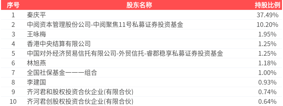公司股东户数为3.36万户,前十大股东持股数量为4.80亿股,占总股本比例为56.63%,前十大股东持股情况如下: