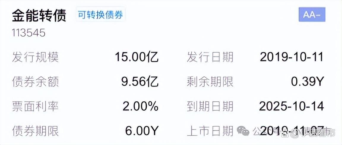 《小债看市》统计,目前金能科技仅存续一只“金能转债”,发行于2019年10月11日,当前余额9.56亿元,将于今年10月14日到期。