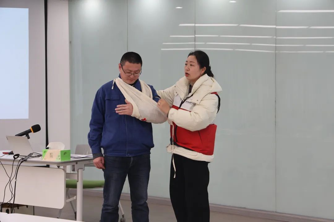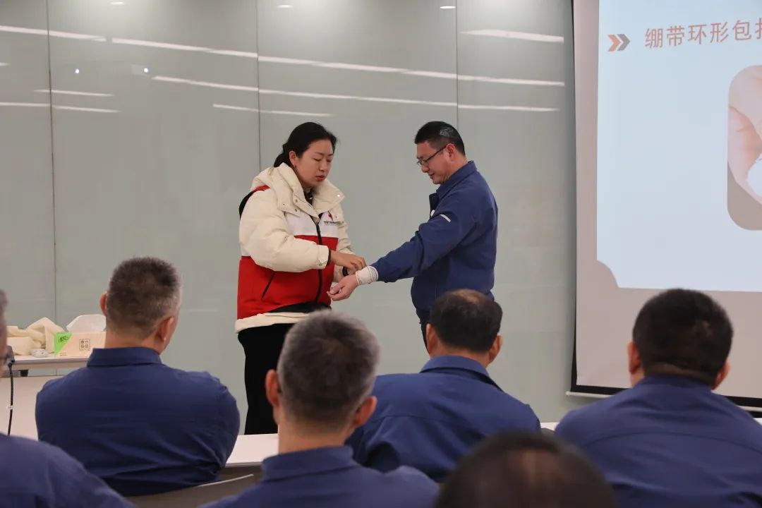 总结会的最后一个环节,为帮助员工掌握应急救护技能,提升自救、互救能力和安全防范意识,工会特别邀请南通市通州区红十字会的杨娅楠护士为大家带来创伤救护、心肺复苏等知识的培训,通过现场救护演示、细节讲解,让各技能要点更加深入人心。