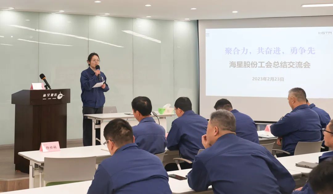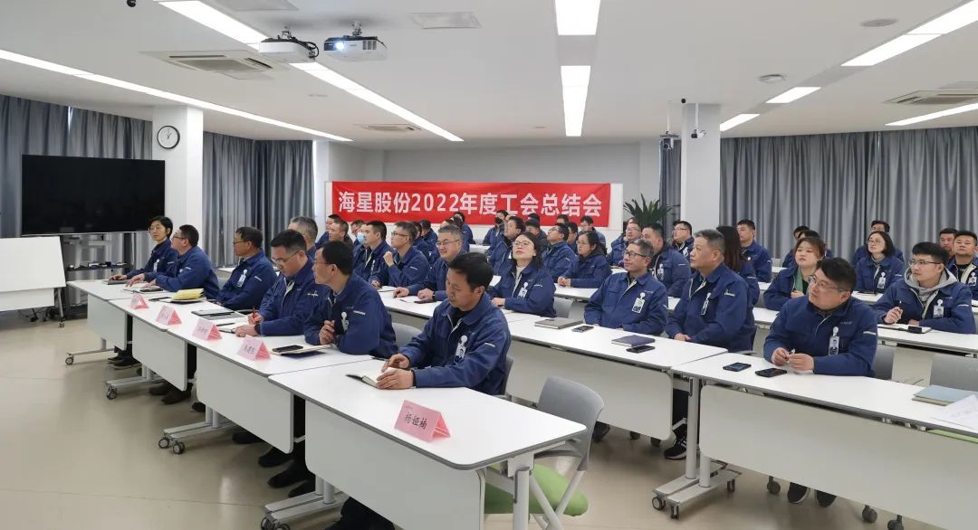 2月23日下午,“聚合力,共奋进,勇争先”海星股份2022年度工会工作总结交流会在海星学院201召开,周总、孙总、王总、朱总应邀出席,各部门负责人、新老员工代表、各协会会长共50余人参加会议。