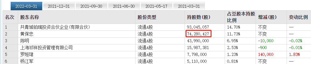 《每日经济新闻》记者注意到,剔除持股5%以下中小股东的表决票数,剩余反对票数(74280427股)与截至2022年第一季度末ST万林第二大股东黄保忠的持股完全一致。以此观之,可以确定黄保忠就是否掉上述议案的主力军。
