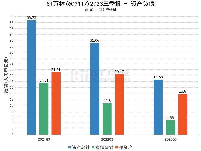 从资产负债方面来看,ST万林2023年三季度末的总资产为18.68亿元,相比上年度末的23.75亿元有所下降。负债合计为4.88亿元,较上年度末的9.8亿元也有所减少。净资产为13.8亿元,与上年度末的13.95亿元相比略有下降。资产负债率为26.13%,较上年度末的41.26%有所下降。