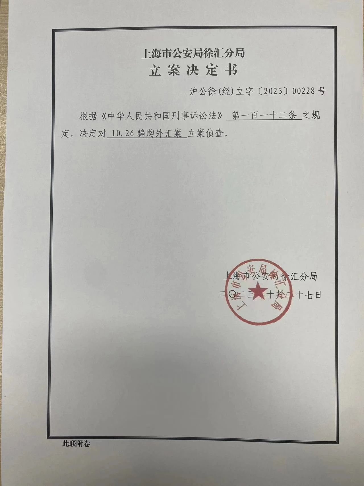 据悉,相关案件已于2023年10月26日在上海徐汇公安立案侦查。后续进展仍需拭目以待。