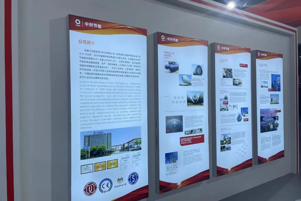 本次世界制造业大会,中材节能的展区面积为123m2,展出的成果和产品包括新一代余热发电技术、生物质锅炉及垃圾焚烧锅炉等动力装备、纤维水泥板/硅酸钙板生产线、抗菌洁净板等高端硅酸钙板产品。丰富的展板内容、生动的视频介绍以及最新的产品和模型吸引了参观展会的诸多客商驻足观看和广泛交流。