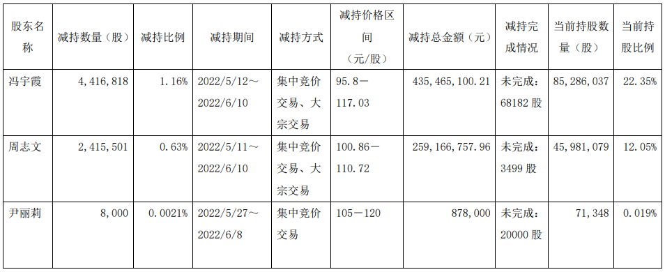 中国经济网北京6月11日讯昭衍新药(603127.SH)昭衍新药昨晚公告显示,昭衍新药董事冯宇霞及其一致行动人周志文以及监事尹丽莉、李叶于今年5月、6月分别减持公司441.6818万股、241.5501万股、8000股、2000股。冯宇霞、周志文夫妇分别套现4.35亿元、2.59亿元,合计套现6.95亿元。尹丽莉套现87.8万元,李叶套现23.85万元。
