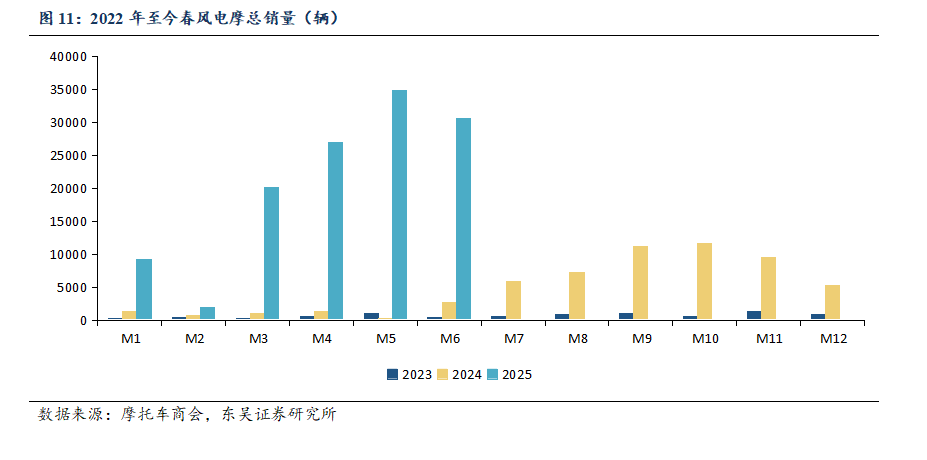 根据摩托车商会数据,2025H1公司燃油摩托车总销量中,250cc+占比达83%,较2024年全年+19pct,其中500cc+占比达24%,较2024年全年+20pct。2024H2起公司推出675SR、700MT、800MTX等新品车型,2025H1起量明显,我们认为,产品结构的明显优化将提升公司摩托车产品的ASP和毛利率,改善摩托车业务盈利水平。