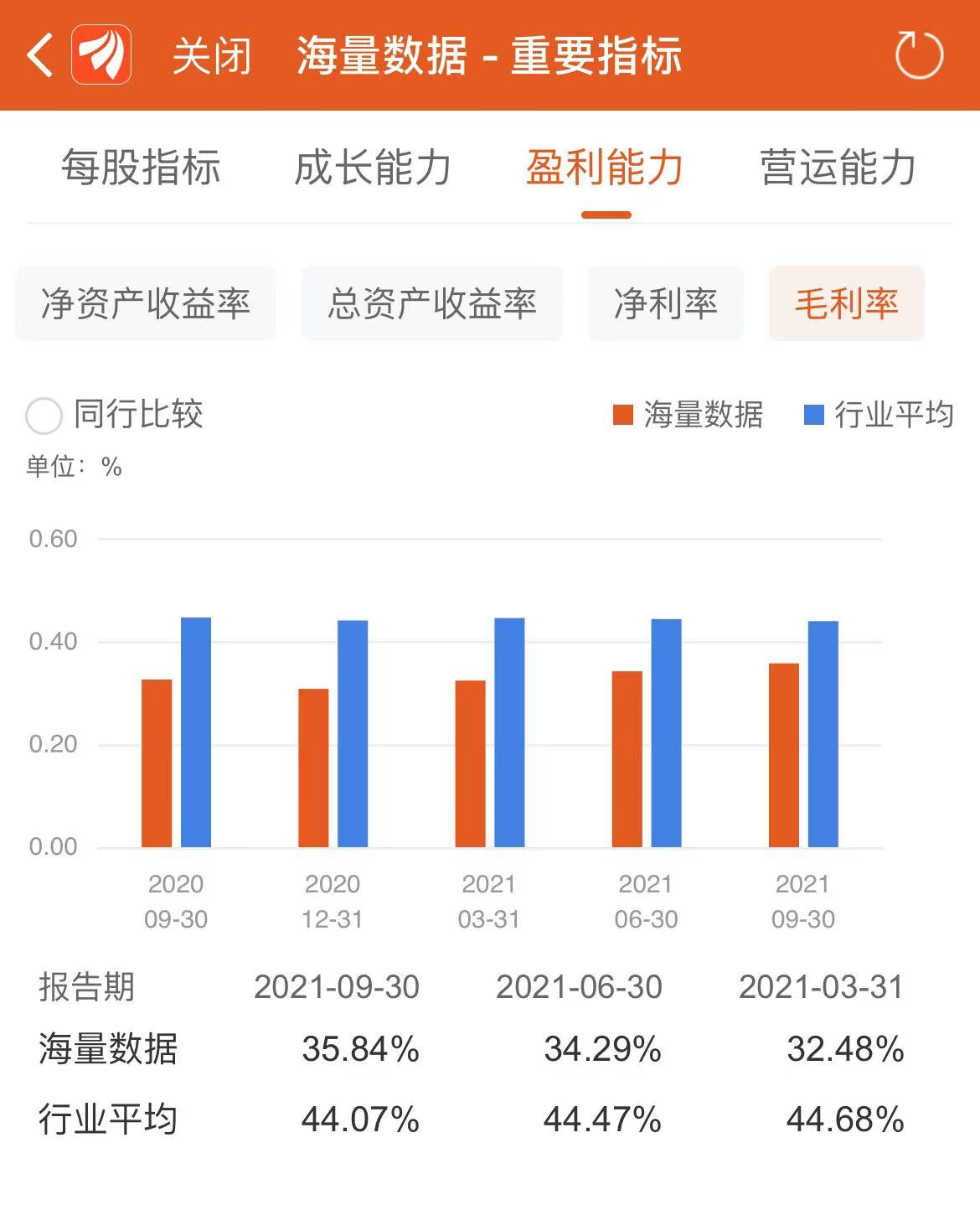 而根据东方财富APP数据,公司一季度到三季度毛利率分别为32.48%、34.29%、35.84%,均低于行业平均值。今年三季度,公司营业成本同比下降4.4%,营业收入同比上升0.4%,推动其毛利率略微上升3.2%。