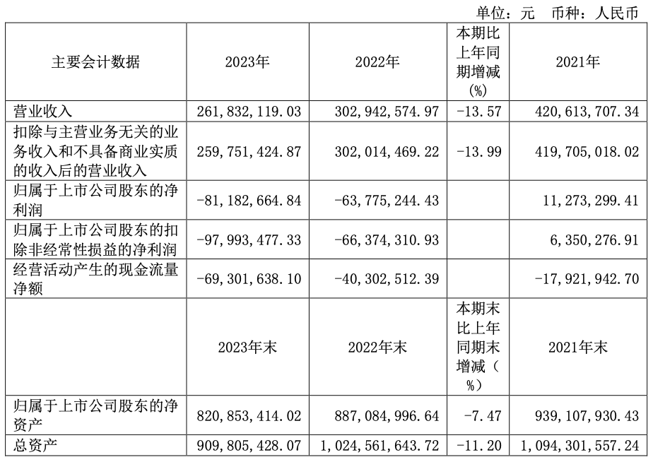 2023 年营收 2.62 亿,同比减少 13.57%;亏损 8118 万。