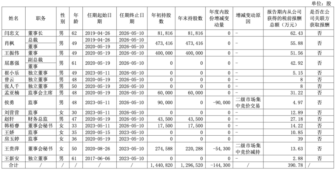现任及报告期内离任董事、监事和高级管理人员持股变动及报酬情况: