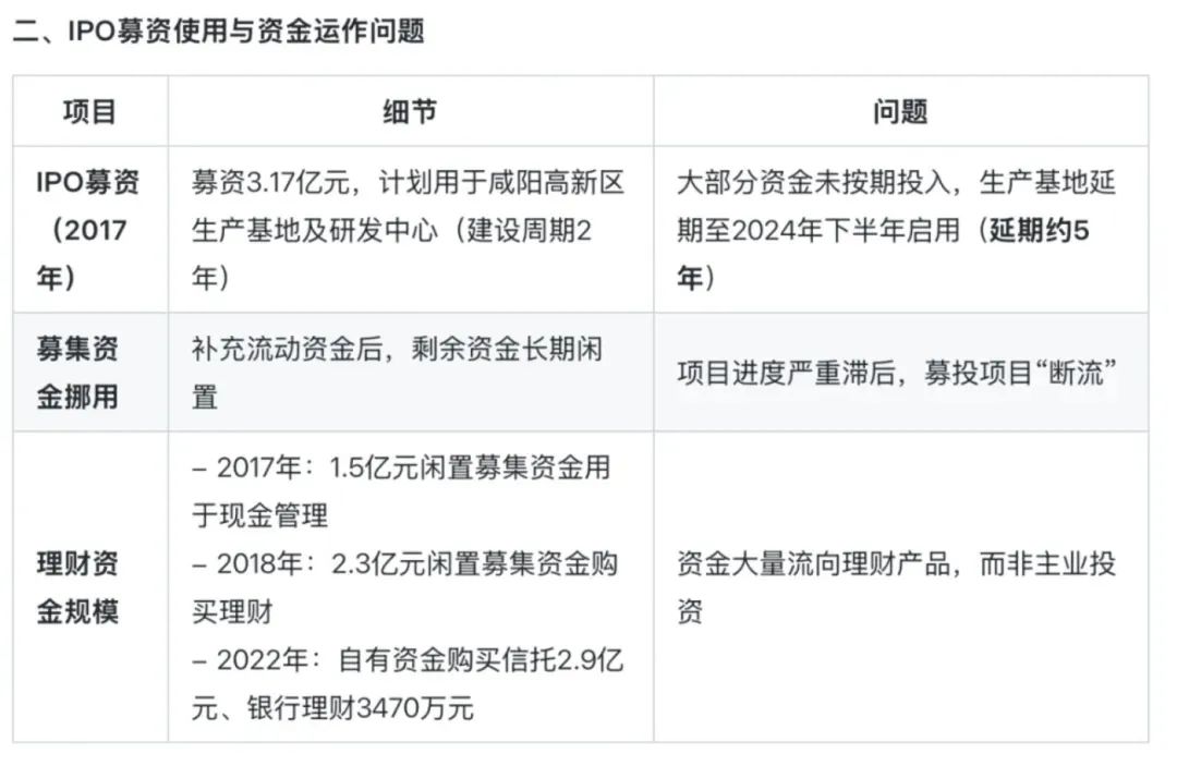 此时,其延期多年的IPO募资生产基地项目完成且宣称“投产后可实现年营业收入30亿元”,突然降落的巨大产能显得生不逢时。